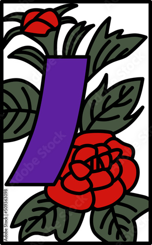 © nissat, Obraz premium シンプルな花札のカラーイラスト 水無月 牡丹 青短 6月 牡丹に青短