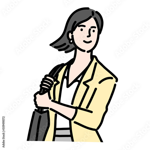 © トワトワ, Fototapeta premium 風に髪をなびかせて笑顔で立っている若いビジネスウーマン