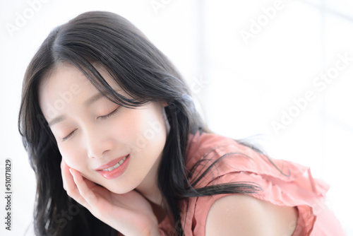 Fototapeta premium 美容などにも 目を閉じる女性のアップ