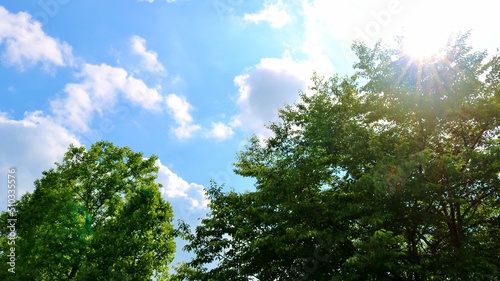 Obraz premium 初夏 爽やかな青空と癒しの新緑 風景 古河