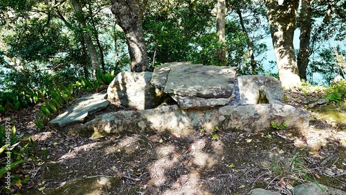 Obraz premium 対馬の霹靂神社の裏にある朝日山古墳の石棺