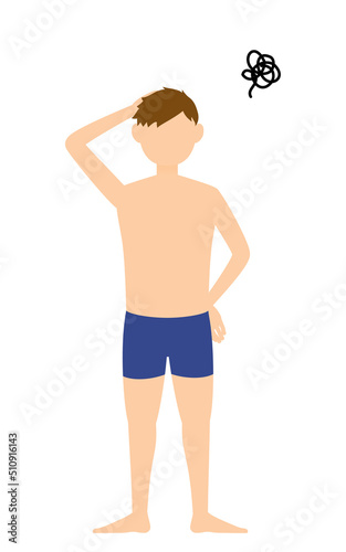 Fototapeta premium 男子生徒、水着姿、頭を抱えて悩む