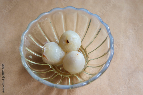 Obraz premium うろこ状の硬い皮を剥いたライチ