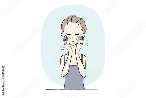 © blue93, Obraz premium 顔を洗う女性のイラスト