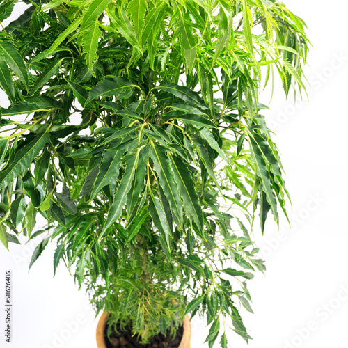 © Shigeyasu Urayama, Obraz premium 観葉植物、ポリシャス・フルティコサの葉【白背景】