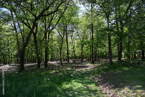 © wankodog, Fototapeta premium 国営アルプスあづみの公園内の緑の木々と散策路