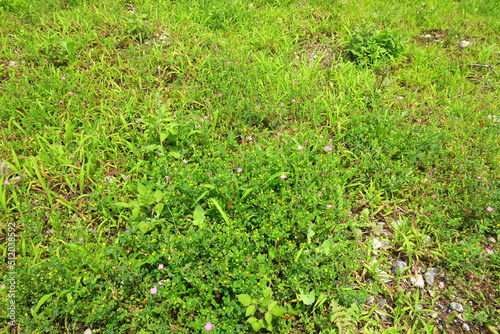 Obraz premium ウマゴヤシとアカバナユウゲショウ咲く初夏の野原風景
