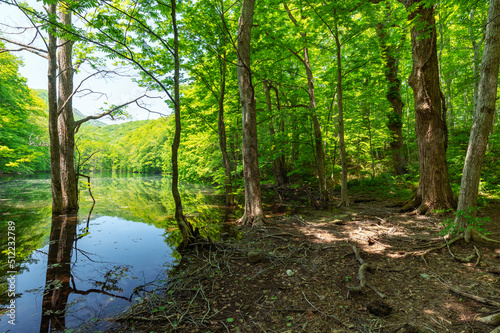 Obraz premium 【青森県十和田市-長沼】新緑の長沼-蔦の沼巡りの小径。新緑の時期の森林浴は医者いらず?