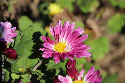 Obraz premium 秋の日本の庭に咲くピンク色のスプレーギクの花