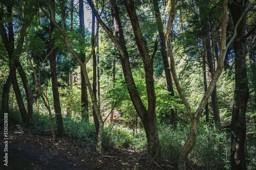 © aqua214, Obraz premium 薄暗い雑木林とハイキング道