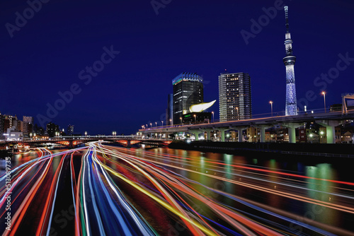 © Kinapi, Fototapeta premium 駒形橋から望む屋形船の光跡