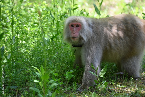 Obraz premium 国営アルプスあづみの公園で目線が合った猿