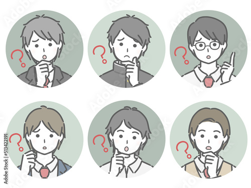 Fototapeta premium 疑問に思う男子学生の丸アイコンセット