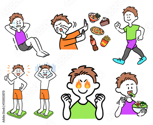 Naklejka premium ダイエットに励む男性のセット