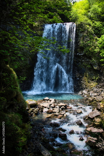© megustaelbosque2020, Obraz premium 乗鞍三名滝と呼ばれる、落差8メートルの迫力ある善五郎の滝とその周辺のさわやかな6月の風景