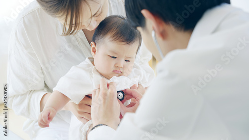 Obraz premium 赤ちゃんを診察する医師 小児科医 乳幼児検診