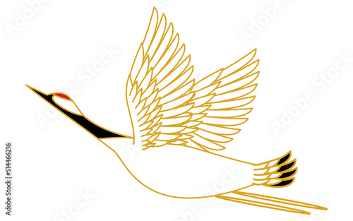 Fototapeta premium 和風、羽を広げて舞う鶴の線画