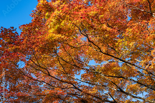 © Kunikazu Watanabe, Fototapeta premium 空を埋める赤く染まったモミジ