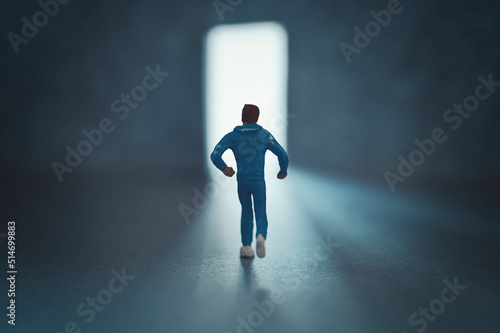 Obraz premium 光の扉とミニチュアの男性