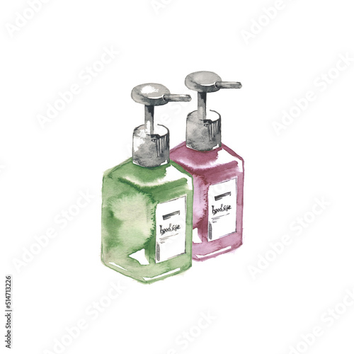 © izumikobayashi, Obraz premium 緑と紫のプッシュ式ボトル、素材