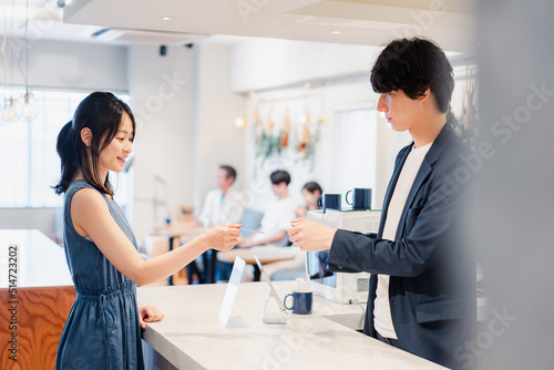 Obraz premium レジでクレジットカード決済をする若い女性