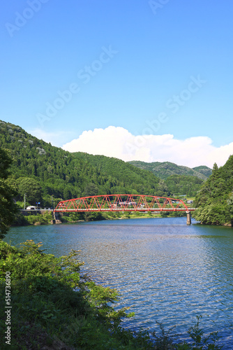 Fototapeta premium 笠置峡に掛かる赤い武並橋