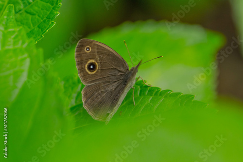 © 眞, Fototapeta premium 紫陽花の葉にとまるヒメジャノメ
