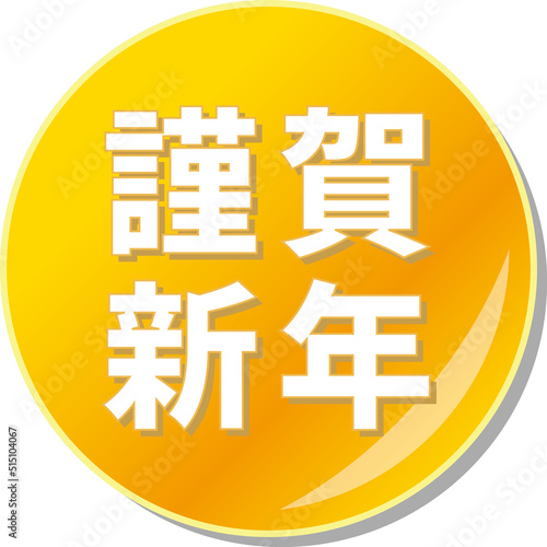 Obraz premium 「謹賀新年」の文字が描かれたオレンジ色の缶バッチアイコンのベクターイラスト