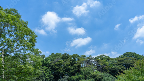 Obraz premium 晴れた日の木々と青空|日本の風景