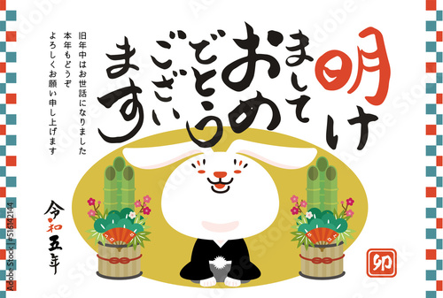 Naklejka premium 年賀状 2023 干支 門松 卯 横