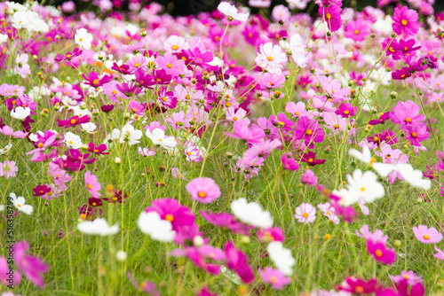 Obraz premium 秋 花 コスモス 9月 10月 季節 屋外 写真 植物 花 自然 人物なし 横位置 背景 背景素材 素材 風景写真 花畑