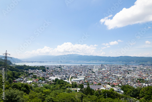 Obraz premium 夏の諏訪湖と町並み
