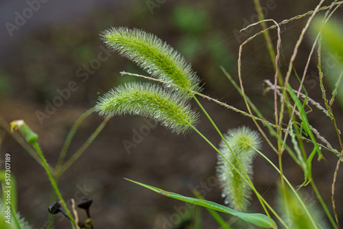 Obraz premium 雨上がりに濡れた野草