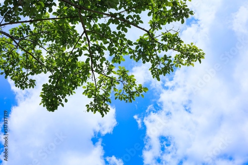 Obraz premium 初夏の晴れた空と新緑 エコロジーイメージ