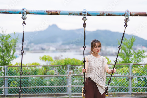 Fototapeta premium 公園でブランコをする女性
