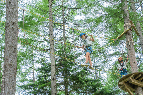 Fototapeta premium 夏休みにアスレチックで遊ぶアジア人の小学生