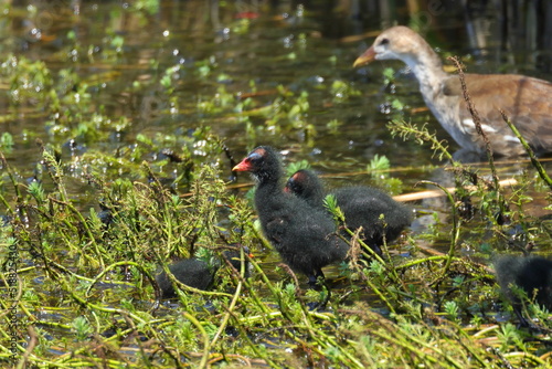 Obraz premium 湿地のバンの雛達