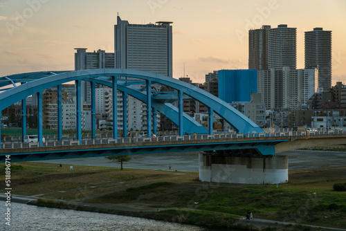 © onotorono, Obraz premium 東京の風景:夕方の丸子橋01