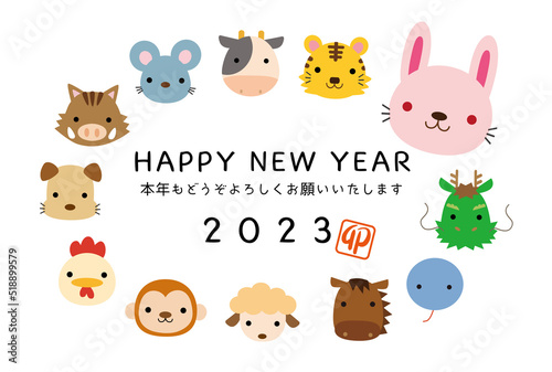 Naklejka premium 十二支 年賀状 2023年 卯年 横 02