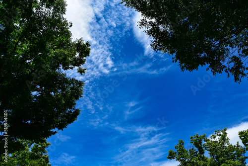 Obraz premium 夏の透き通るような真っ青な空と雲