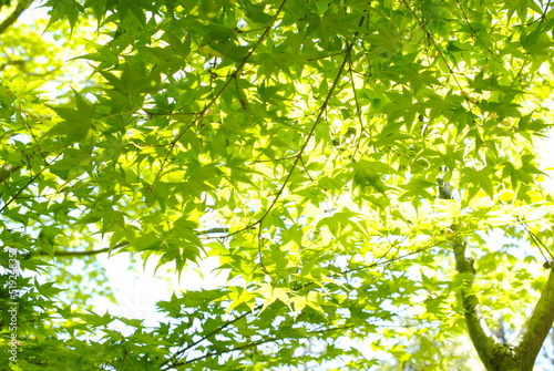 © fucchie, Obraz premium 陽の光で透けた青紅葉の葉