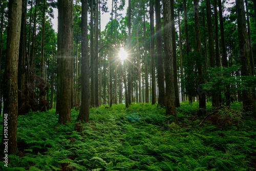 Obraz premium 森に差し込む光