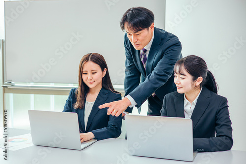 © buritora, Fototapeta premium オフィスで会議をするスーツ姿の男女