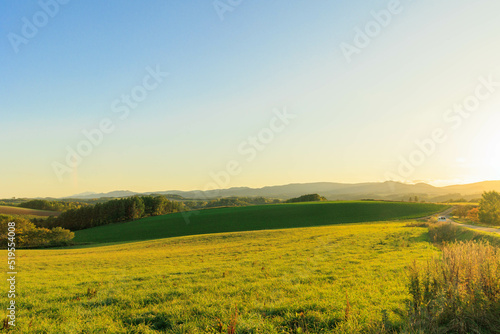 Obraz premium 夕日に染まる美瑛の丘「秋の北海道」