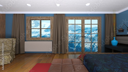 © tsuneomp, Obraz premium 山脈が見えるリビングルーム