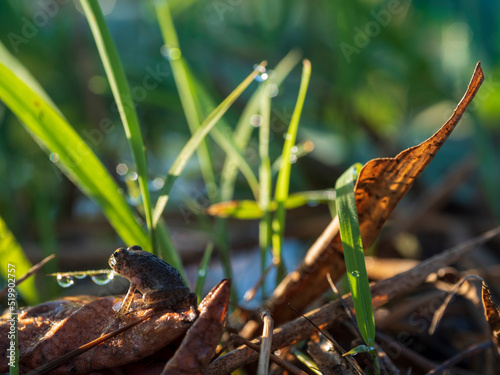Obraz premium 遠くを見つめる小さなカエル
