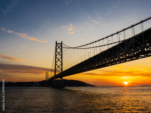 © Taka, Obraz premium 日没時の明石海峡大橋