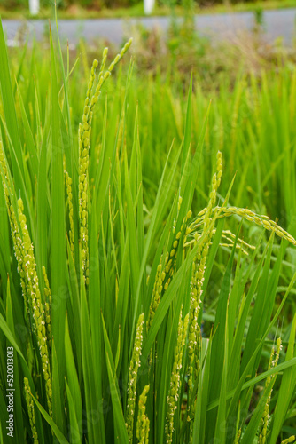 Naklejka premium 成長して花芽を付けた稲穂