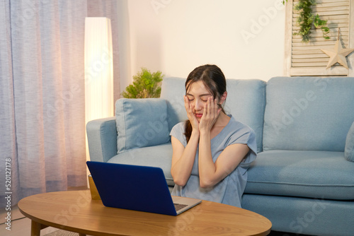 Fototapeta premium 夜にリビングでパソコンを見て困る女性