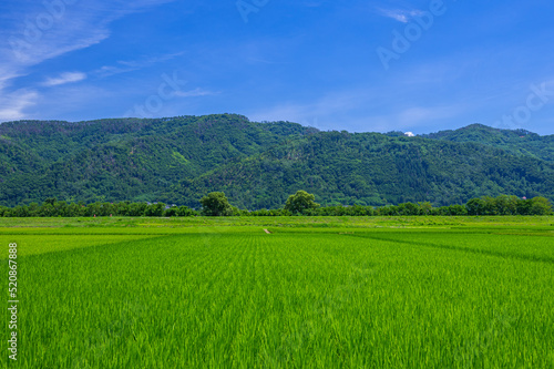 Naklejka premium 夏の鮮やかな田園風景 安曇野市